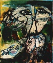 "Hilsen til Charlie Parker" is a vibrant and colorful painting that captures the essence of jazz music. The work depicts an abstract composition of swirling shapes and colors, evoking the improvised rhythms and expressive melodies of jazz.